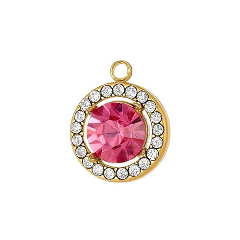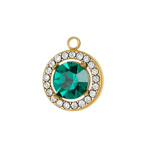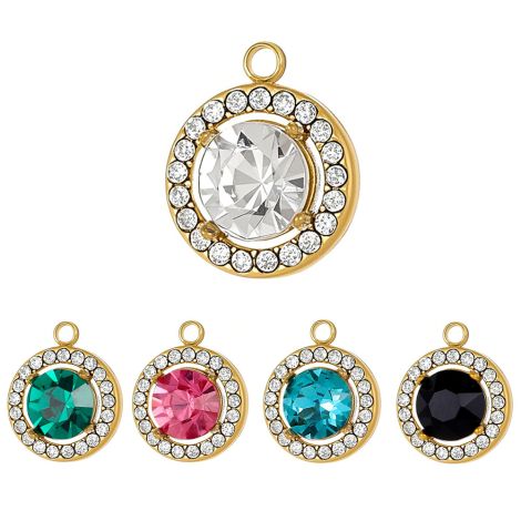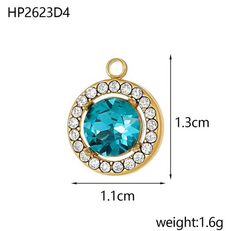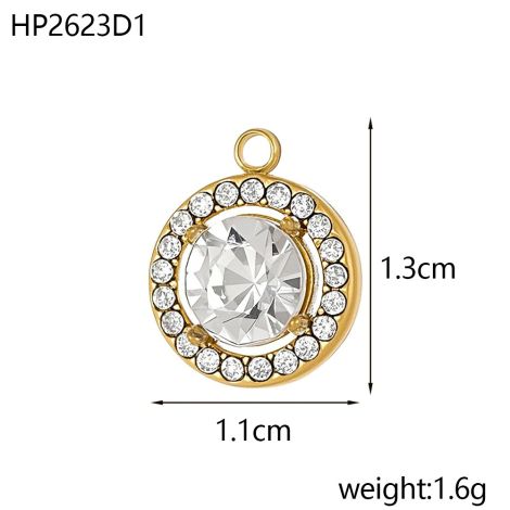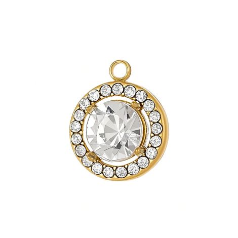 Round Full Diamond Zircon Pendant Stainless Steel 14K Gold Plated DIY Jewelry Accessories