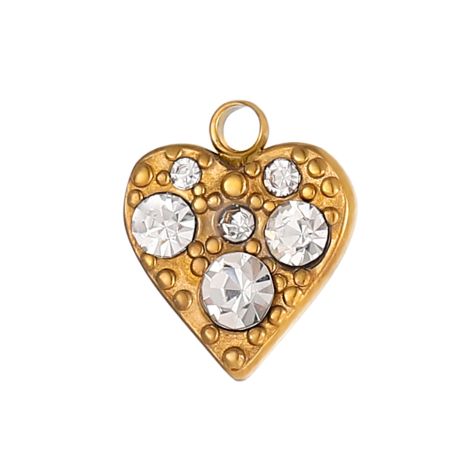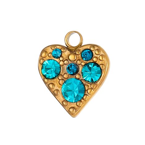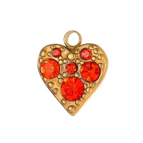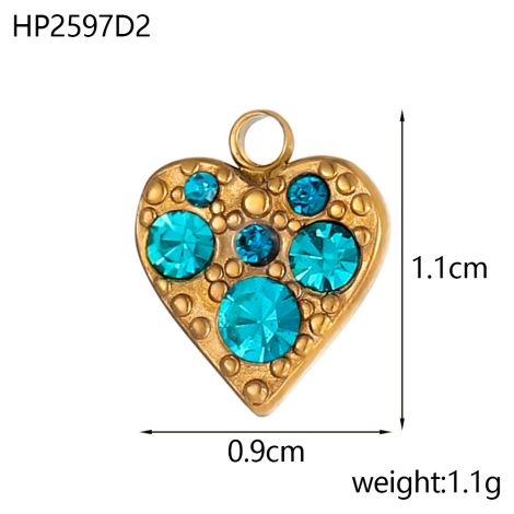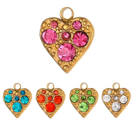 Micro-inlaid diamond colored zircon love heart pendant stainless steel 18K gold-plated hanging ring jewelry accessories