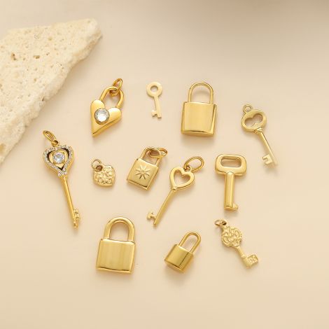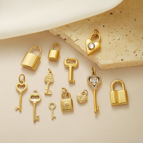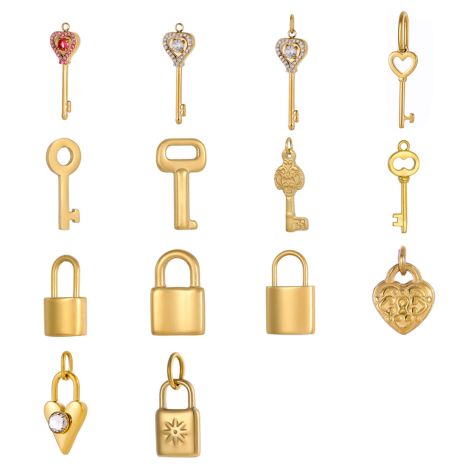 18K vacuum plated stainless steel heart lock pendant key pendant DIY accessories