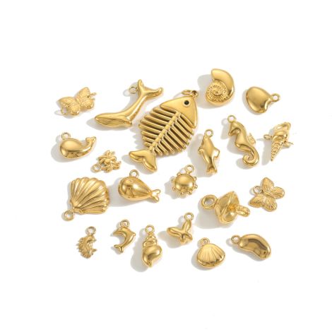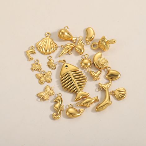 Stainless steel 18k plated fish bone butterfly shell DIY pendant earrings necklace bracelet accessories