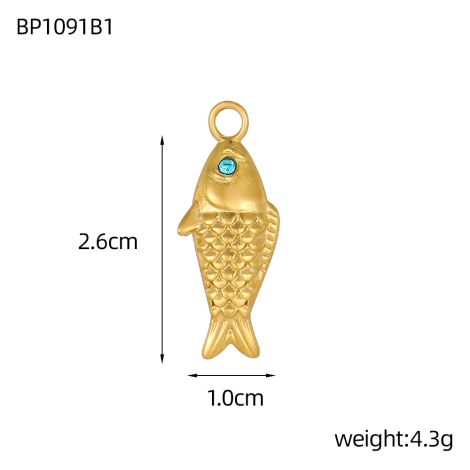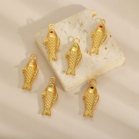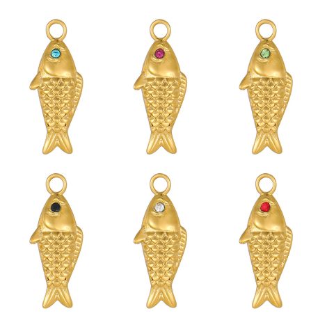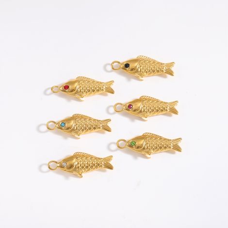 Stone-inlaid three-dimensional fish pendant movable ring jewelry accessories stainless steel gold-plated