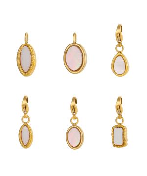 Micro inlaid shell elliptical circular lobster clasp pendant
