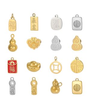 Square brand pendant to attract wealth and fortune Chinese style stainless steel DIY pendant accessories