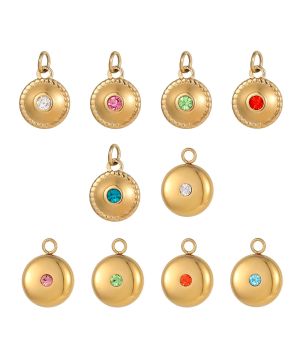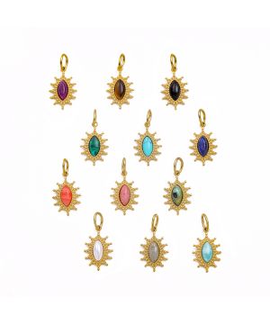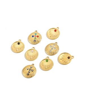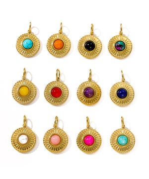 Sun round plate inlaid with natural stone, stainless steel plated with 18K gold, DIY jewelry accessory