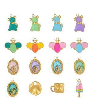 Oil dripping handmade DIY Morandi color puppy bee stainless steel jewelry accessories