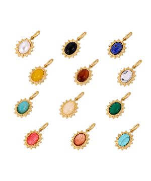 Natural Stone Birthstone Small Pendant Stainless Steel DIY Accessories