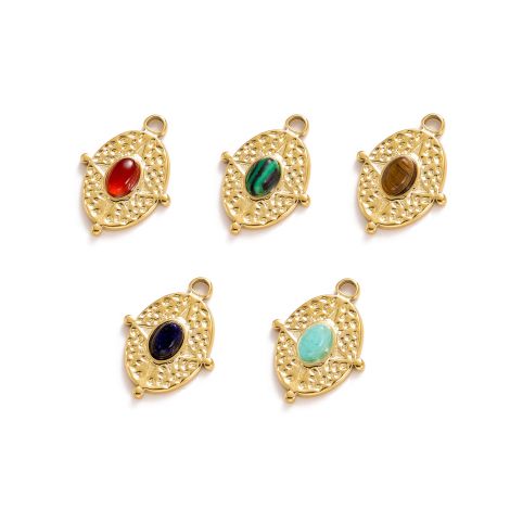 Round star natural stone pendant DIY stainless steel 18K gold plated