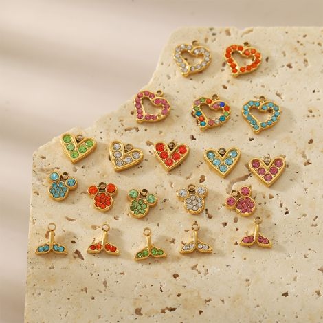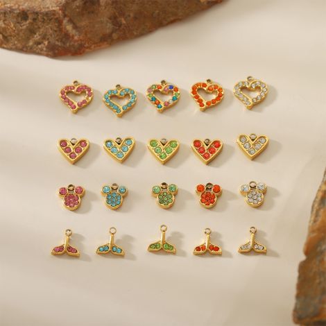 Love fishtail stainless steel micro-inlaid zircon colored diamond DIY pendant European and American accessories