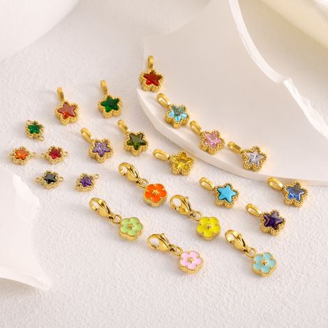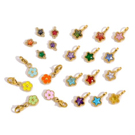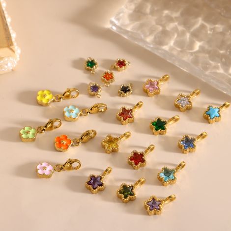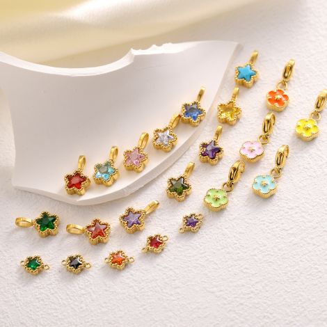 Colored zircon five-pointed star pendant DIY stainless steel gold-plated