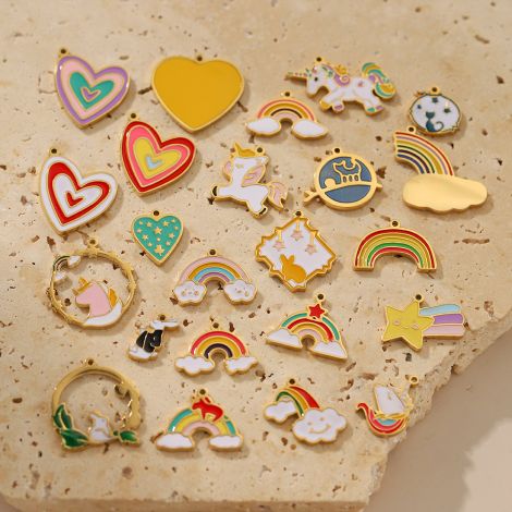 Rainbow monologue love DIY stainless steel oil drip mixed color jewelry accessories