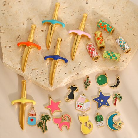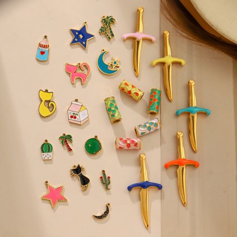 Oil dripping enamel DIY accessories cylindrical cat knife stainless steel electroplated gold