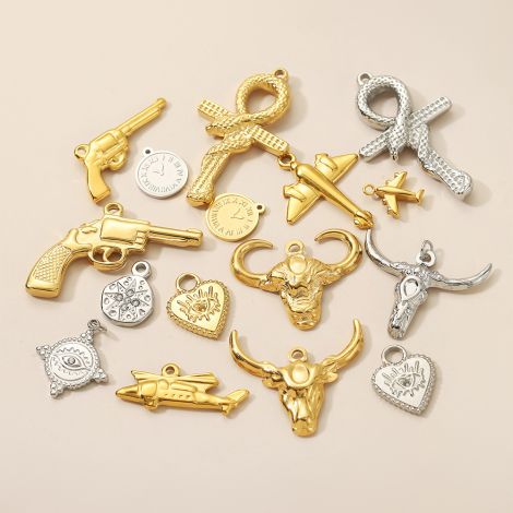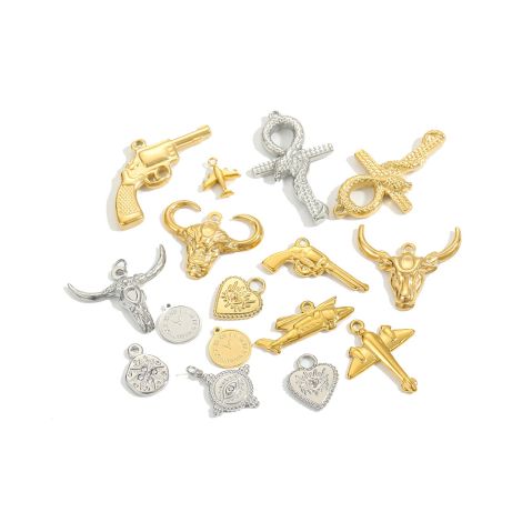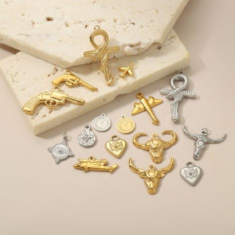 Niche airplane bull head clock stainless steel gold-plated DIY pendant jewelry accessories