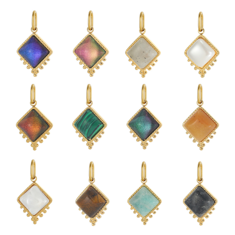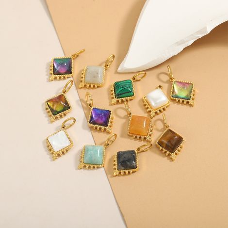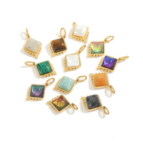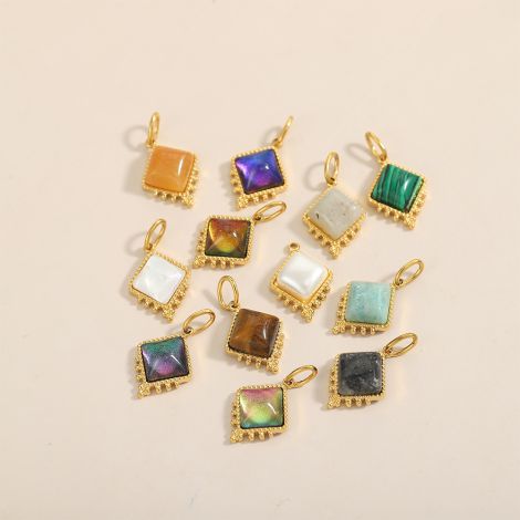Diamond shaped natural stone tiger eye turquoise stainless steel diy pendant