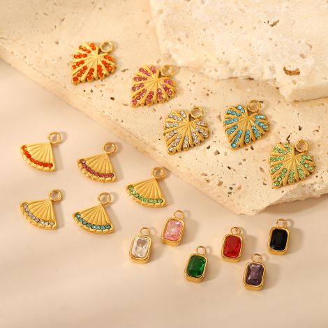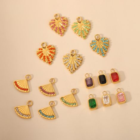Micro inlaid zircon colored diamond handmade DIY accessory, shell, leaf, heart block pendant accessory