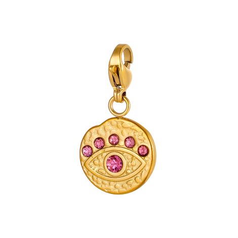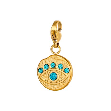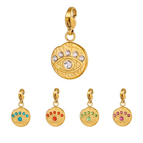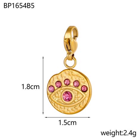 Micro-inlaid colored diamond zircon devil's eye hanging ring round pendant stainless steel DIY accessories