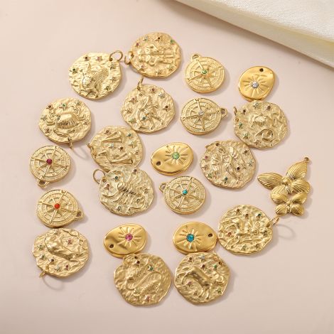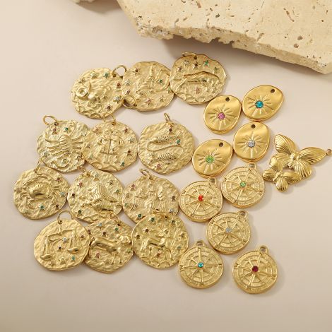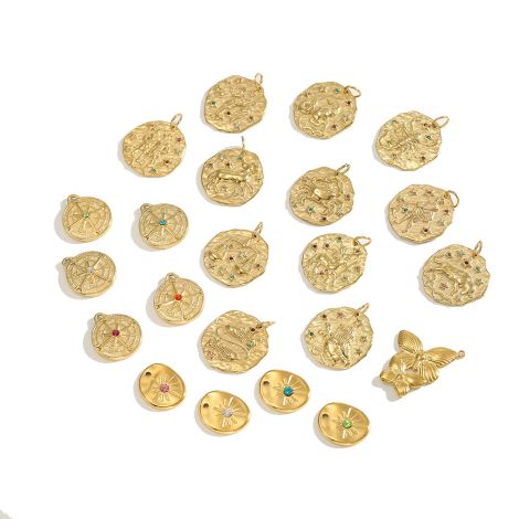 Irregular stainless steel round plaque jewelry accessories for the twelve zodiac signs