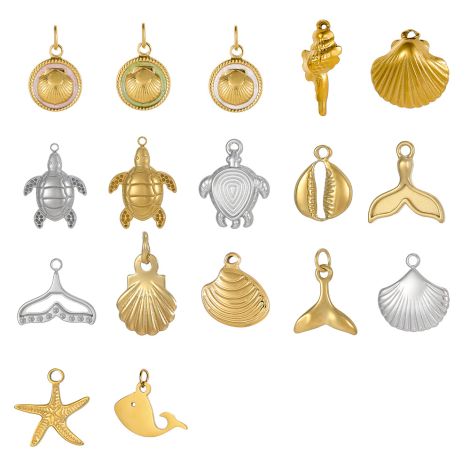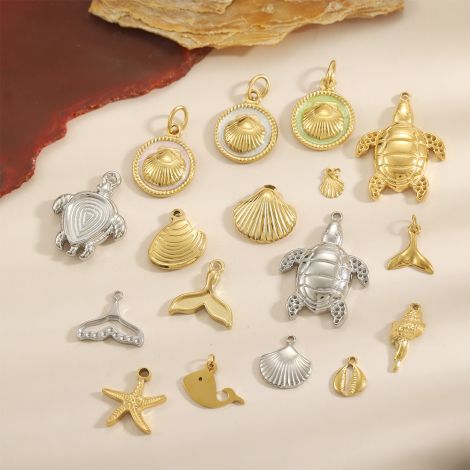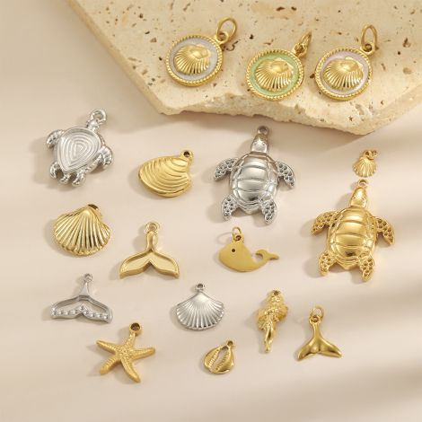 Ocean style sea turtle shell DIY pendant accessories stainless steel electroplating