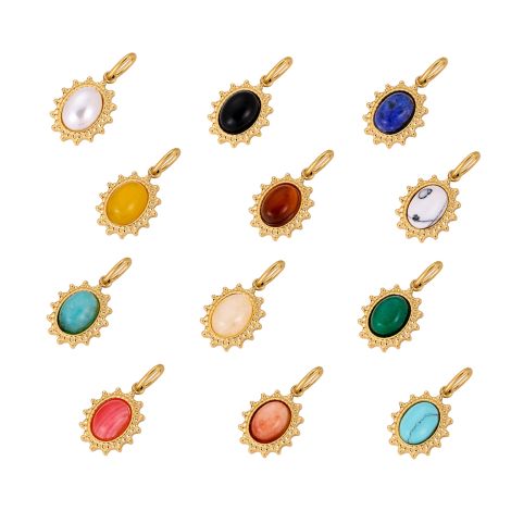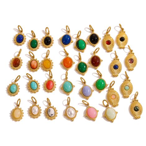 Natural Stone Birthstone Small Pendant Stainless Steel DIY Accessories