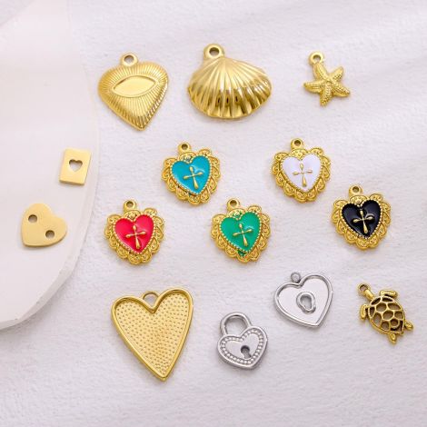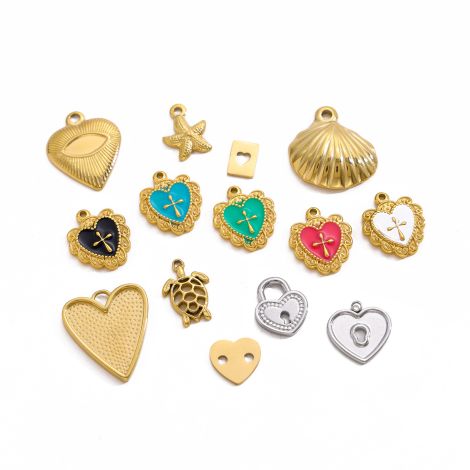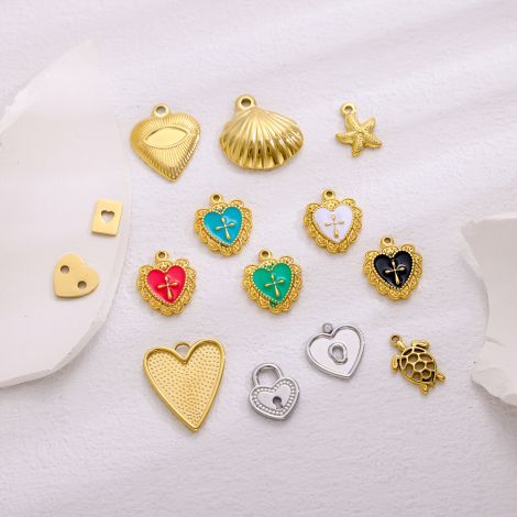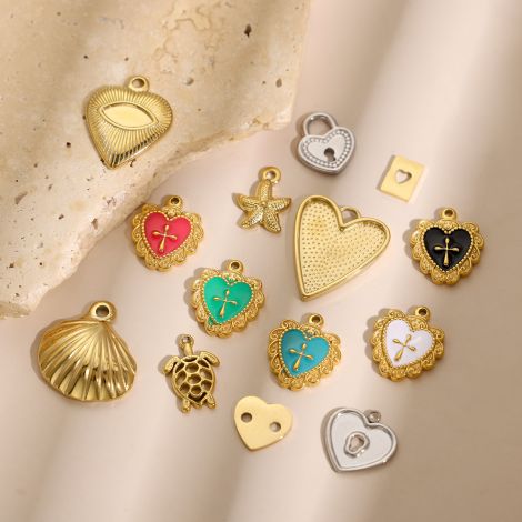Love Heart Pendant Stainless Steel Gold-Plated DIY Jewelry Accessories