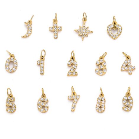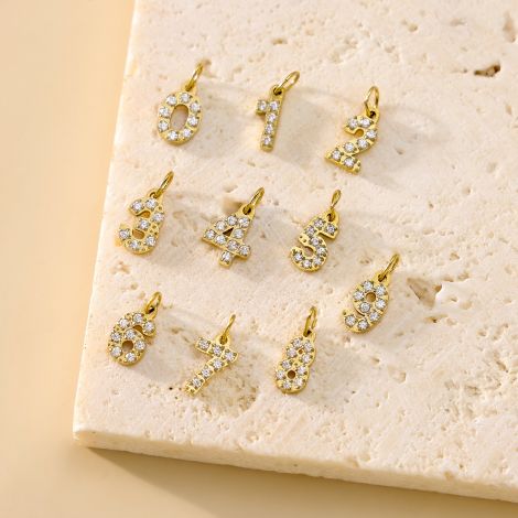 Micro-inlaid diamond zircon digital love symbol hanging ring pendant accessories stainless steel electroplating DIY handmade jewelry