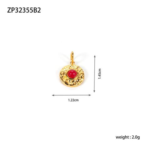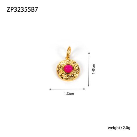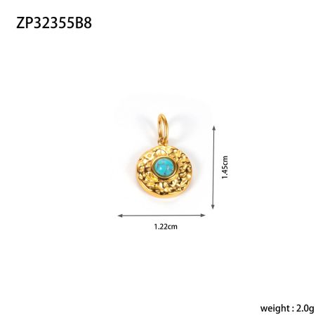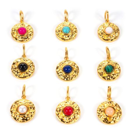 Round hammered natural stone stainless steel 18K gold-plated pendant