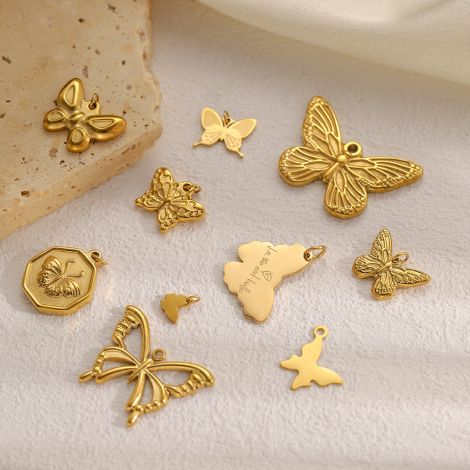Butterfly hollow DIY stainless steel gold-plated jewelry accessories