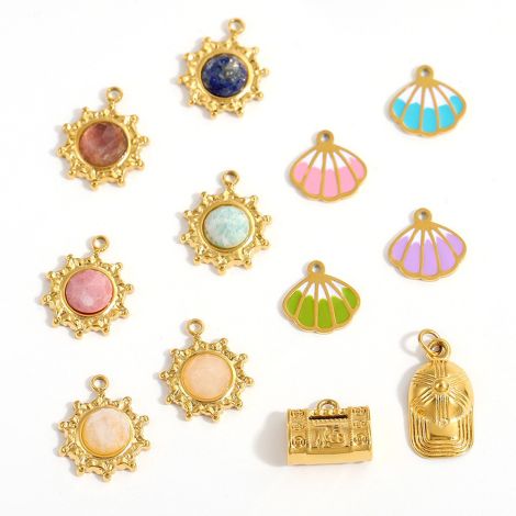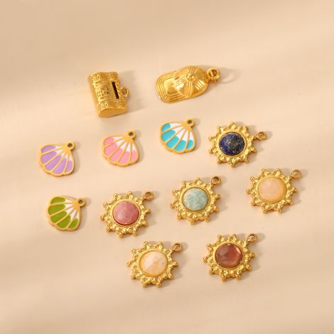 Sunflower natural stone shell oil drop stainless steel gold-plated DIY jewelry accessories