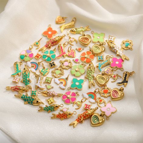 Stainless steel color-retaining oil drop hanging ring retro boots love rainbow DIY jewelry accessories