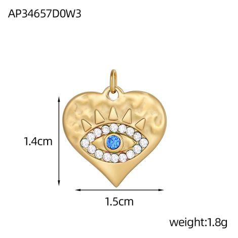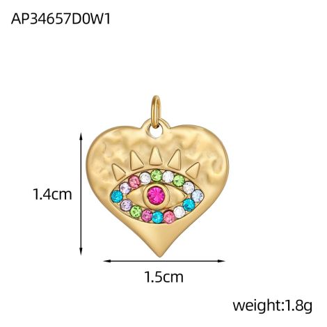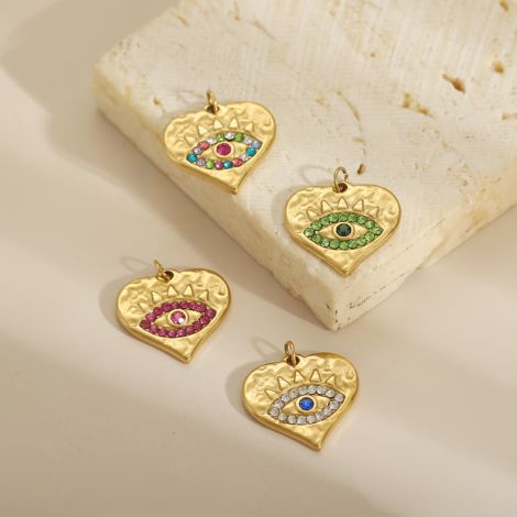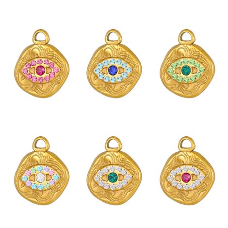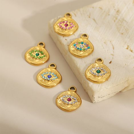 Round plate with colored zircon and devil's eye stainless steel 18K gold-plated pendant