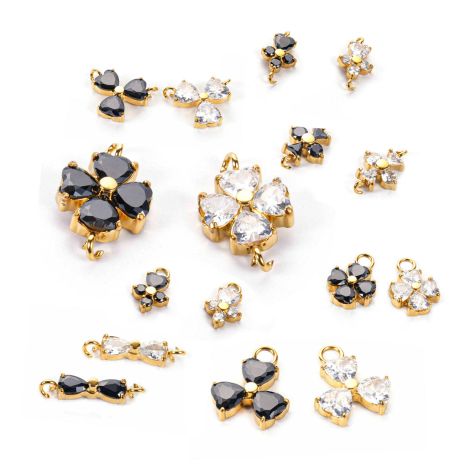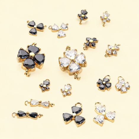Four-leaf flower stainless steel zircon jewelry bow DIY small pendant connecting buckle