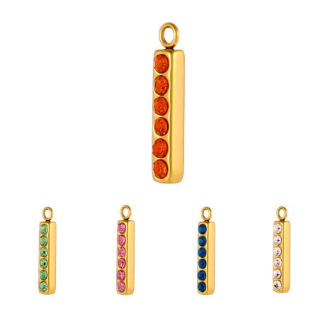 Micro inlaid with diamond colored zircon rectangular vertical pendant, stainless steel pendant