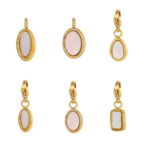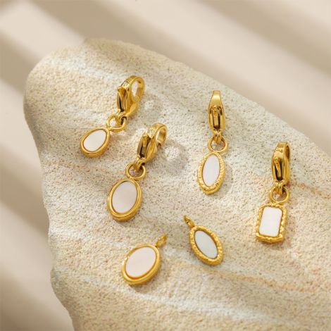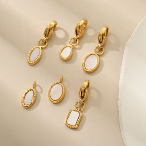 Micro inlaid shell elliptical circular lobster clasp pendant