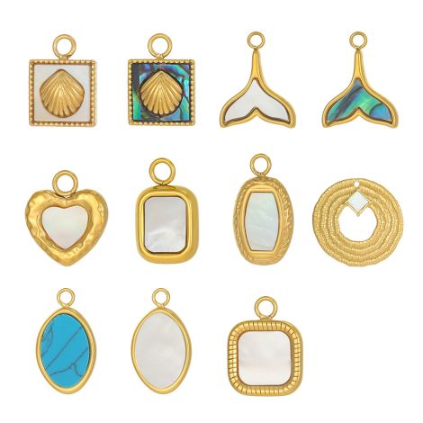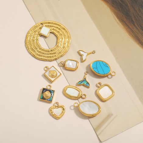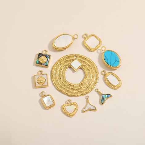Stainless steel inlaid white shell DIY jewelry pendant accessories