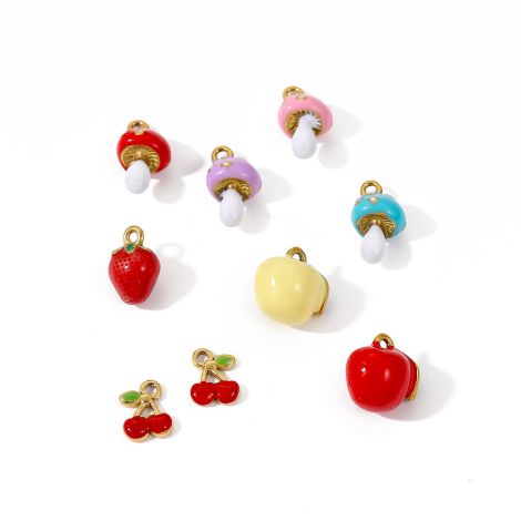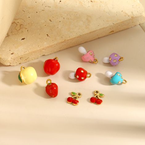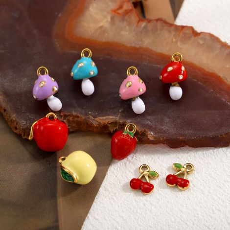 Apple strawberry fruit pendant diy stainless steel gold plated
