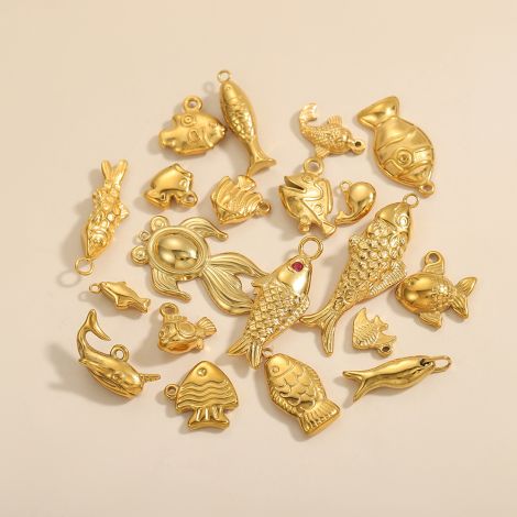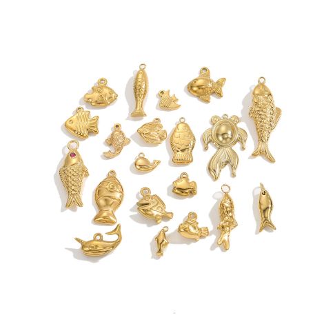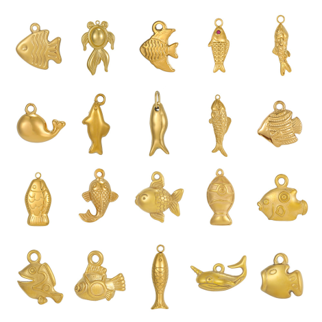 Marine animal fish stainless steel electroplated gold DIY pendant accessories