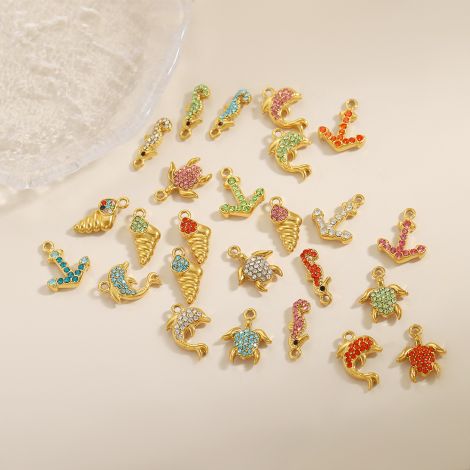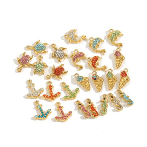 Ocean style zircon inlaid seahorse dolphin DIY pendant