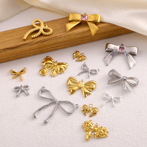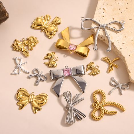Bow pendant accessories DIY stainless steel gold-plated jewelry accessories pendant