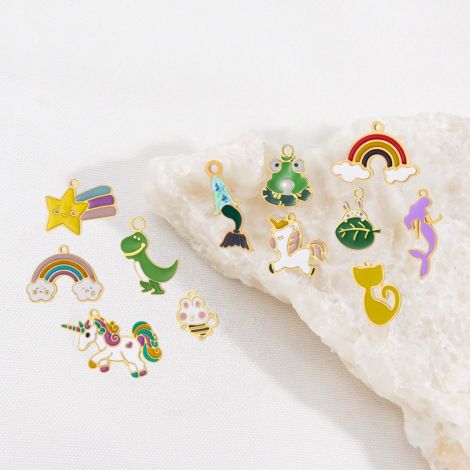 Mermaid cat stainless steel DIY jewelry accessories 14K gold drop oil color