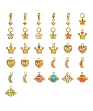 Star Moon Universe Micro-inlaid Colored Zircon Round Pendant Stainless Steel 18K Gold-plated Hanging Ring DIY Jewelry
