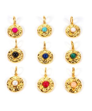 Round hammered natural stone stainless steel 18K gold-plated pendant