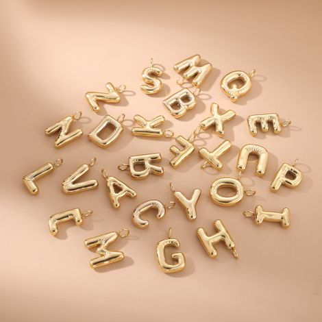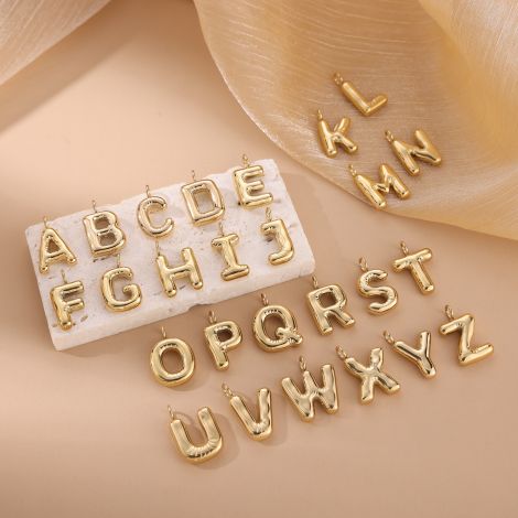 26 letter pendant 14K gold-plated smooth bubble letter necklace jewelry