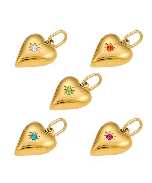 Micro-inlaid diamond colored zircon love heart pendant stainless steel 18K gold-plated hanging ring jewelry accessories